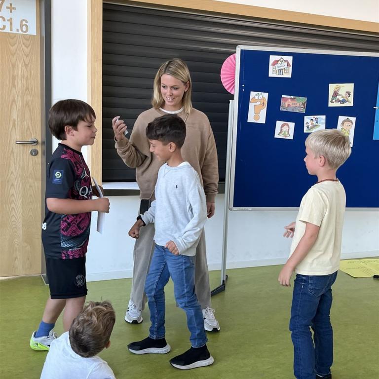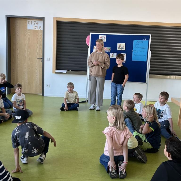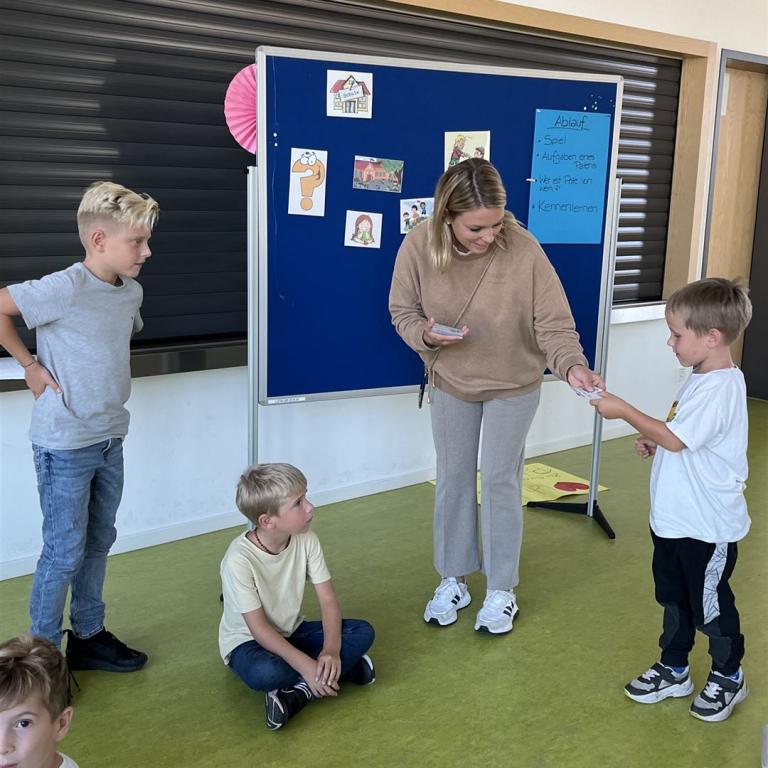 Um den neuen Erstklasskindern die Eingewöhnung in unsere Schule zu erleichtern, fanden zu Beginn des Schuljahres wieder die Patenfeiern statt. Hier lernen sich die dritten Klassen a,b,c und die jeweiligen ersten Klassen kennen und jedes Kind erhält einen (oder mehrere) Paten, die in den ersten Wochen und Monaten mit Rat und Tat zur Seite stehen, bei Fragen weiterhelfen oder einfach als Spielkamerad/in in der Pause da sind. Durchgeführt wurden die Patenfeiern von unserer Schulsozialarbeit Frau Weber und Frau Hoppe.