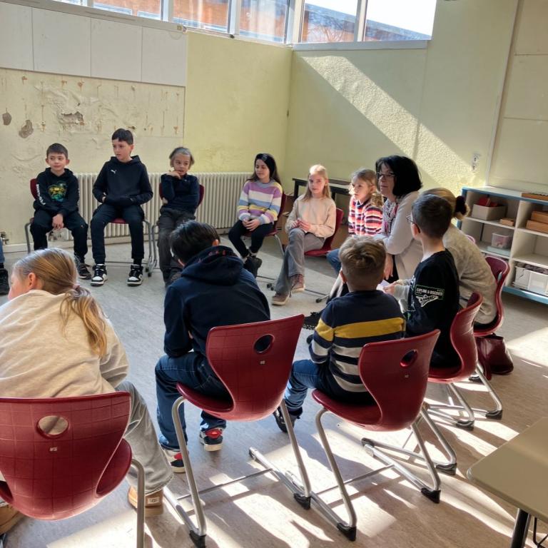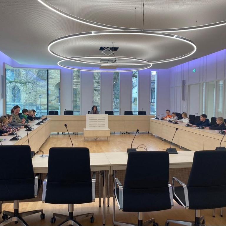 Neben den aktuellen Themen aus der Schülerschaft (Toiletten, Pausen, Schulhof), die uns in jedem Kinderrat beschäftigen, erhielten die Schüler*innen am 20.01.25 die Möglichkeit, das Rathaus in Schwaigern zu besuchen. Gemeinsam mit der Schulsozialarbeit und den Kollegen aus dem Jugendzentrum B1 wurden unsere Klassensprecher*innen von Frau Müller (stellvertretende Hauptamtsleitung) durch das Rathaus geführt. Nach dem Kennenlernen des Bürgerbüros, des Ordnungsamtes, der Kämmerei und des Standesamtes durften die Kinder nach einer Begrüßung durch Frau Rotermund (Bürgermeisterin) im Sitzungsaal Platz nehmen und ihre mitgebrachten Fragen stellen. Standesgemäß wurden die Mädchen und Jungen nacheinander durch Frau Rotermund aufgerufen und konnten durch das Mikrofon an ihrem Platz ihre Anliegen mitteilen.