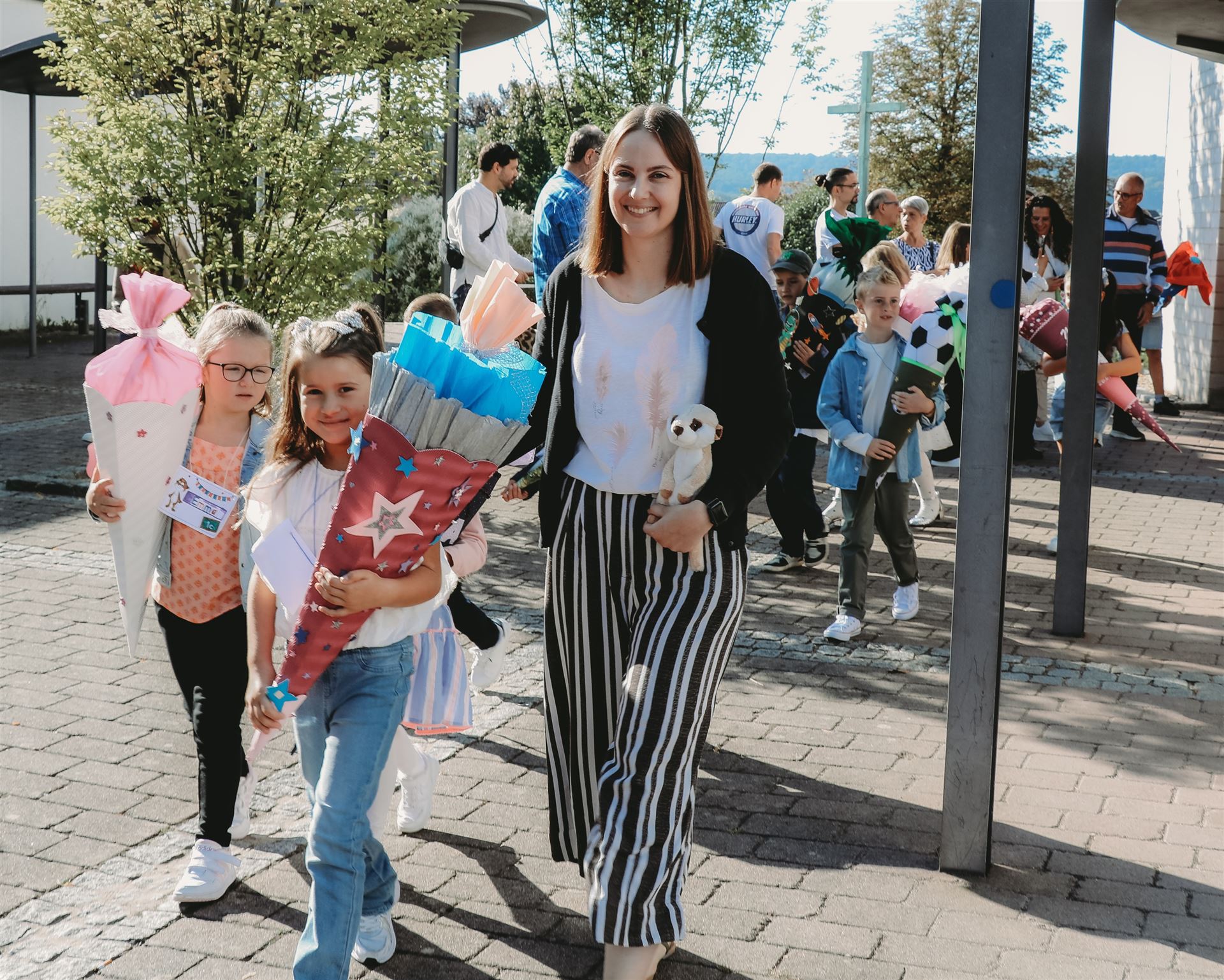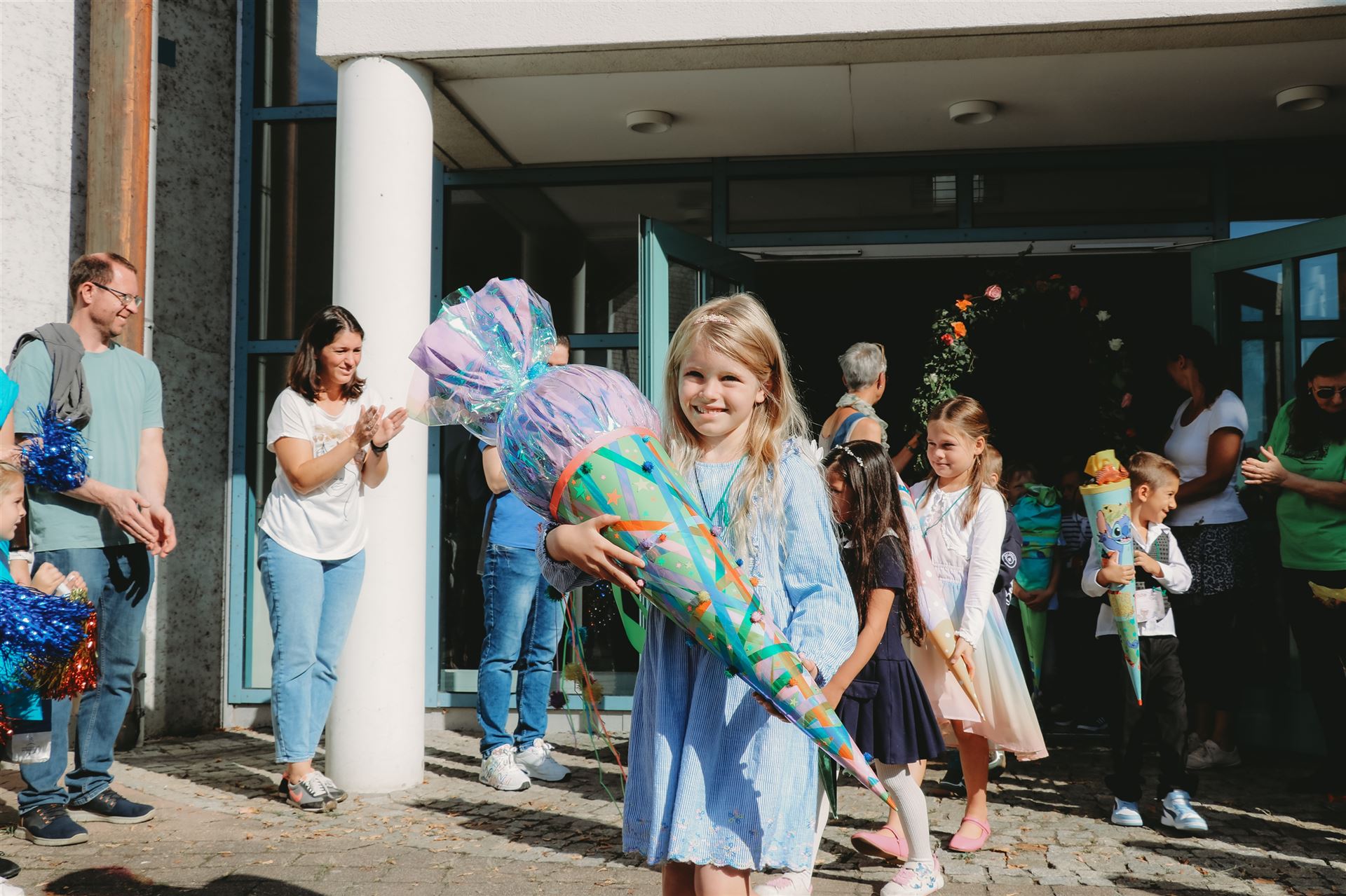 Am Samstag, den 20.September 2025 wurden unsere neuen Erstklässler*innen eingeschult. Nach dem Einschulunsgottesdienst wurden die Kinder in der Sonnenberghalle von Frau Breddermann, Herrn Dekelver und den Kindern der zweiten Klassen mit einem fröhlichen Programm begrüßt. Nach den Vorführungen machten sich die frischgebackenen Schulkinder mit ihren Klassenlehrerinnen auf den Weg zu ihrer ersten Schulstunde, während die Eltern und Gäste auf dem Schulhof mit Kaffee und Kuchen bewirtet wurden.
