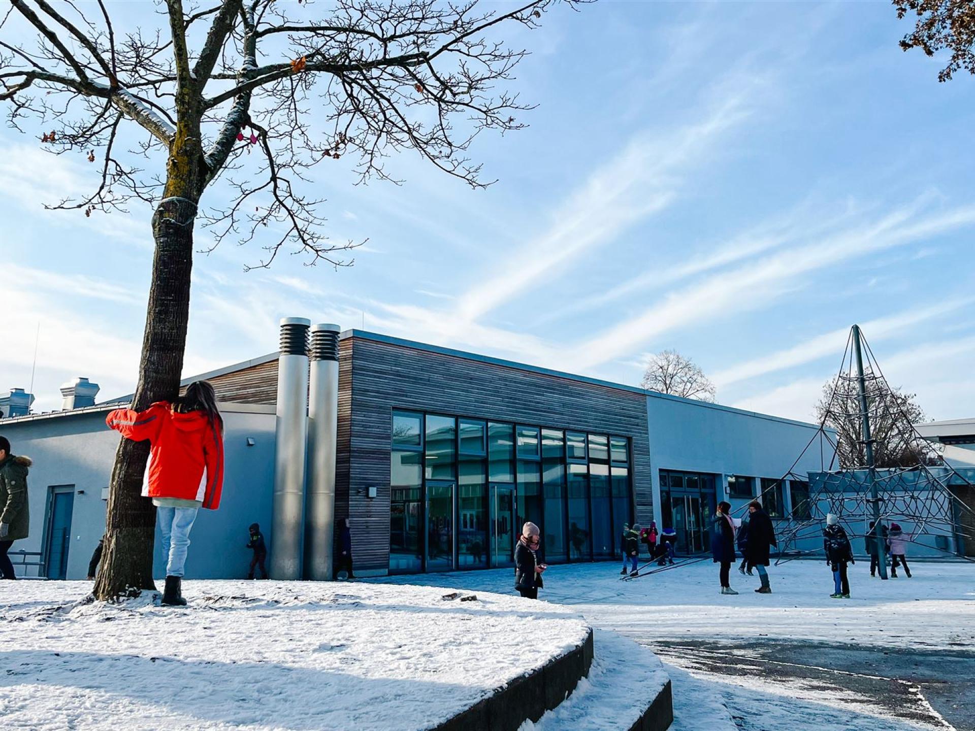 Und sogar ein paar Tage durften wir den Schnee auf dem Schulhof genießen.