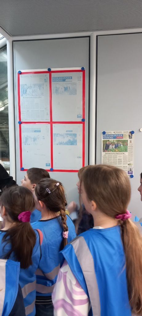Am 24.04.2023 waren meine Klasse und ich im Druckhaus der Heilbronner Stimme. Wir fuhren mit der S-Bahn hin und mussten einmal umsteigen. Als wir dort ankamen, machten wir erst einmal ein Gruppenfoto.