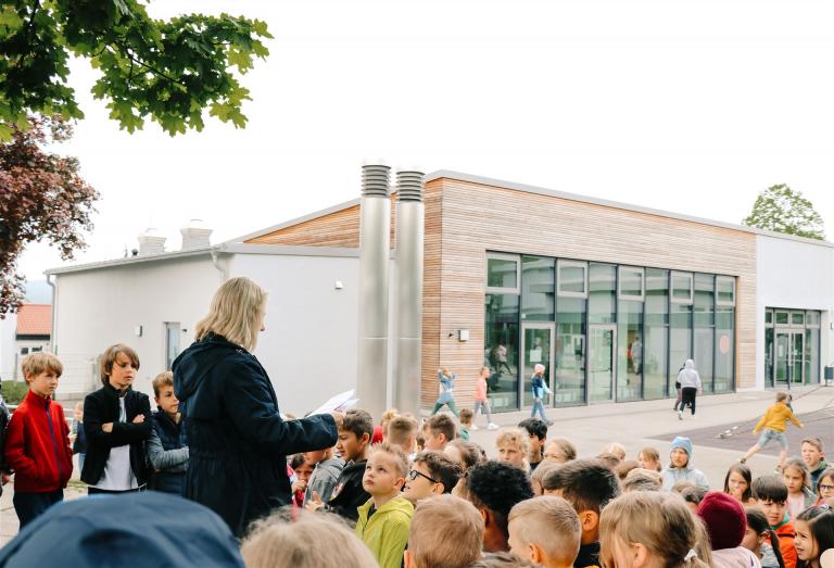 Doch bevor es an den Start ging, bekam jede(r) Schüler*in eine eigene Startnummer mit einem Transponder, damit die gelaufene Zeit gemessen werden konnte. Die Aufregung stieg beim gemeinsamen Aufwärmen. Dann ging es endlich an den Start. Alle Schüler*innen gaben ihr Bestes und kamen unter großem Applaus ins Ziel.