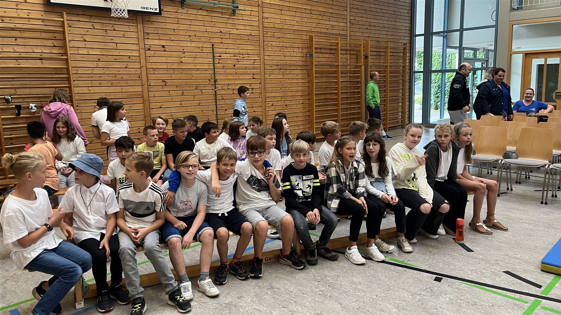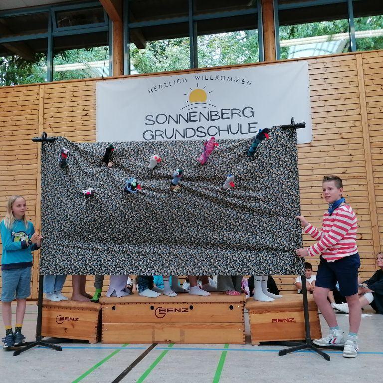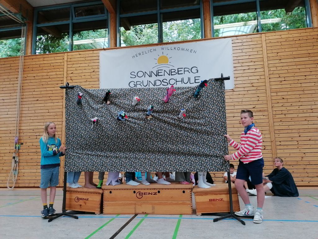 Die 4b sorgte für gute Laune mit ihren lustigen Socken, die zu ManahManah, den Schlümpfen und Andreas Bourani abrockten.