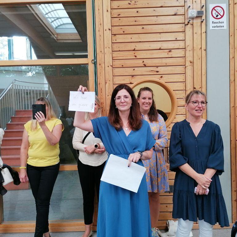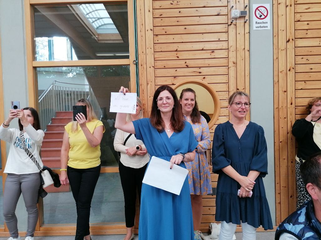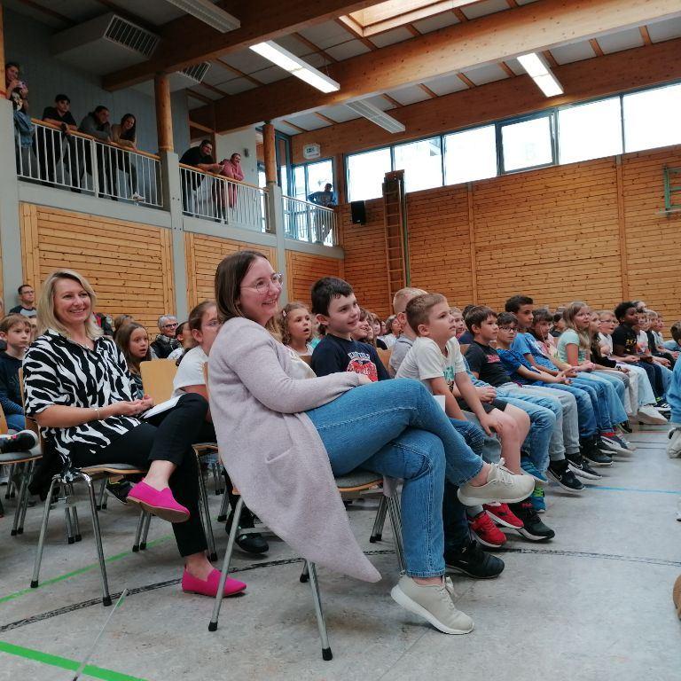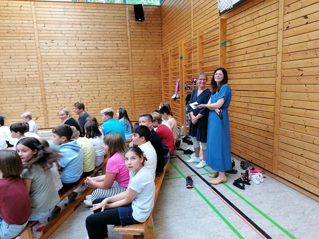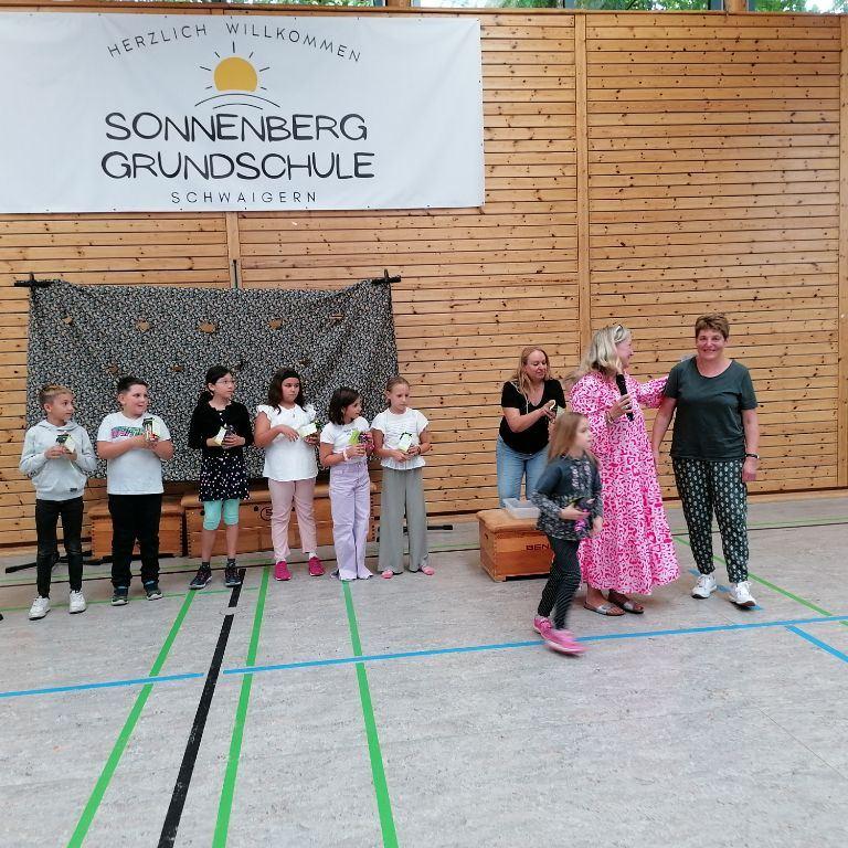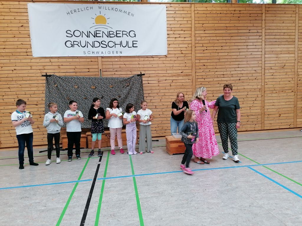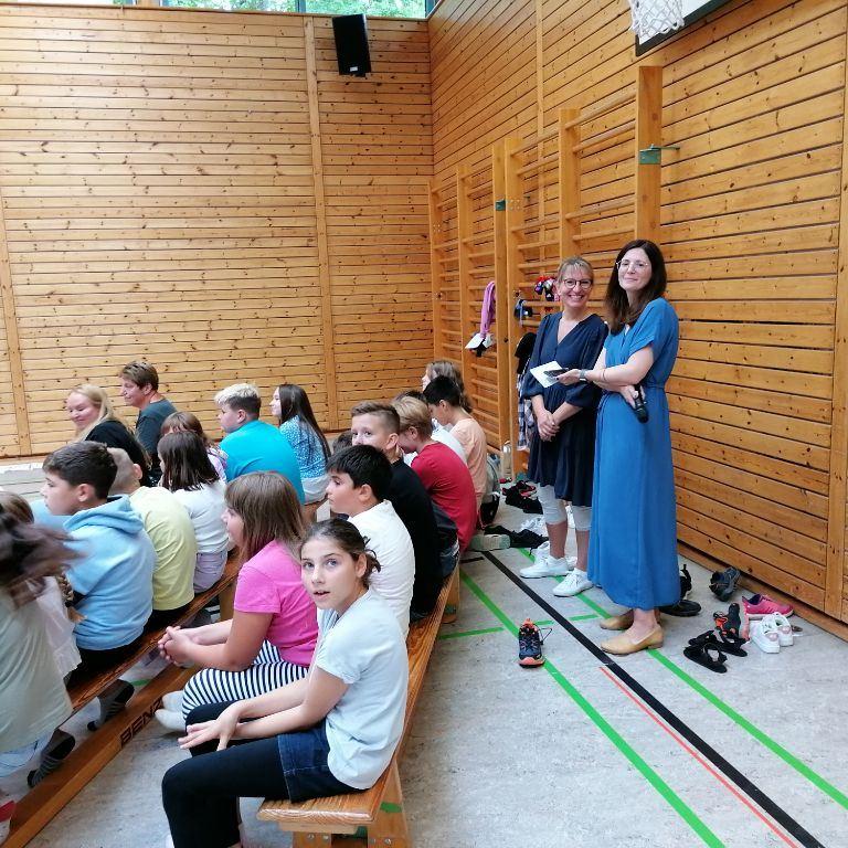 Frau Reinwald entließ die Kernzeitkinder der vierten Klasse mit einem kleinen Geschenk und alle verabschiedeten sich mit einem großen Applaus von Frau Bissinger von der Kernzeitbetreuung, die in ihren wohlverdienten Ruhestand geht.