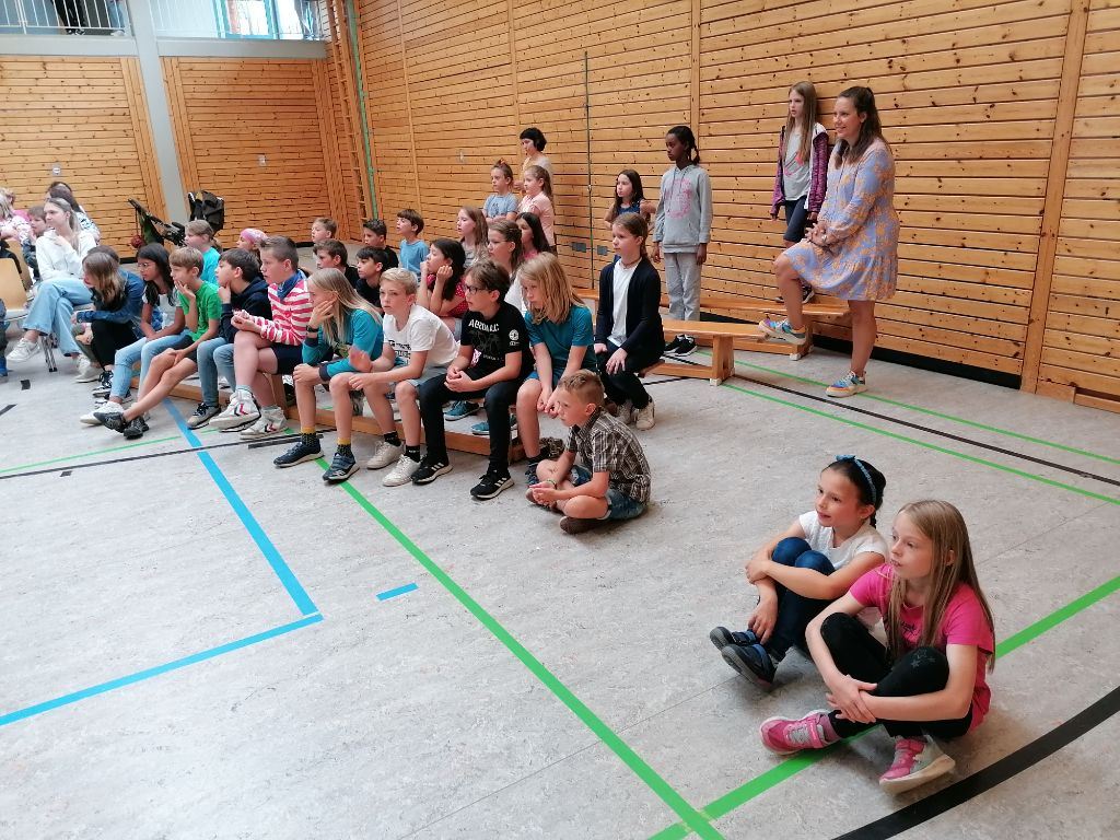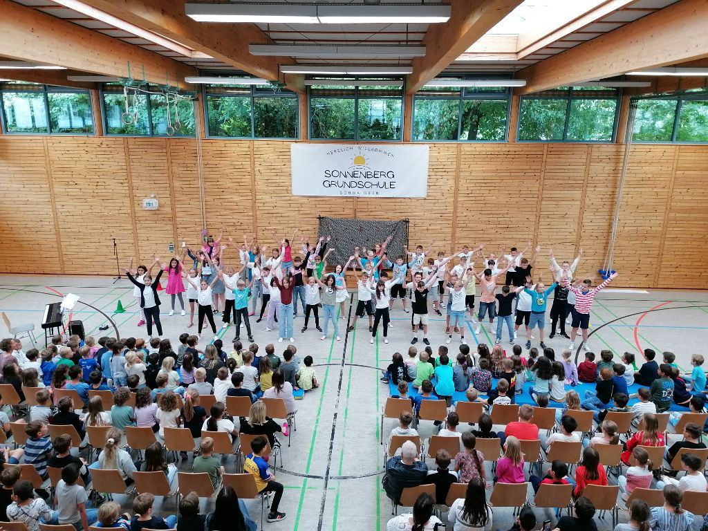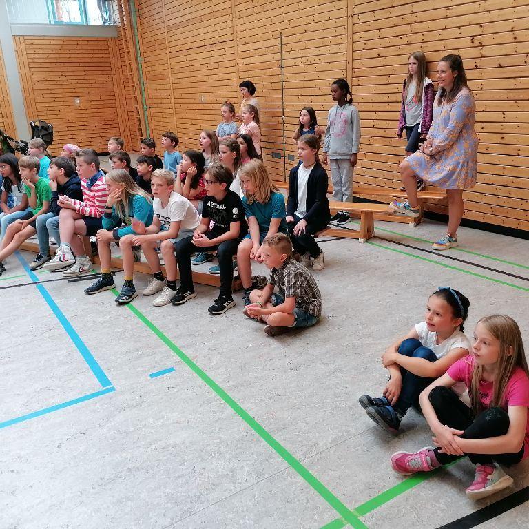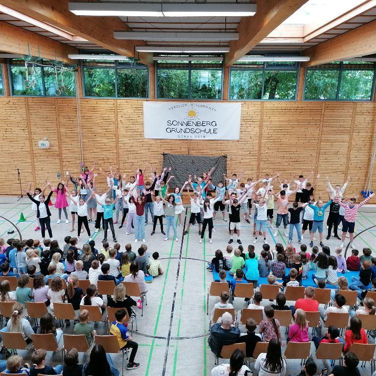 Den Anfang machten alle Viertklässler gemeinsam mit einer coolen Tanzchoreographie zu "Dance Monkey".