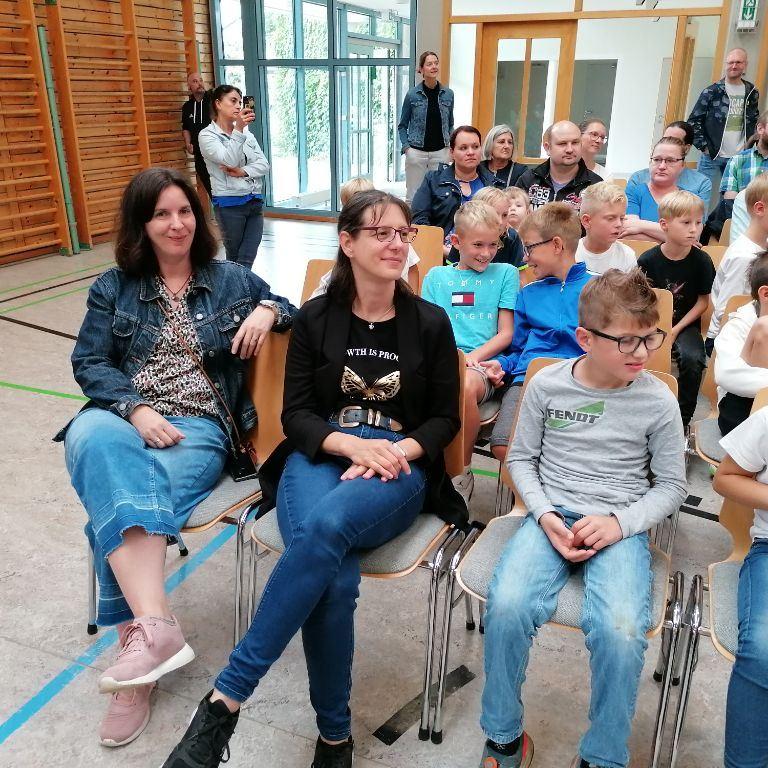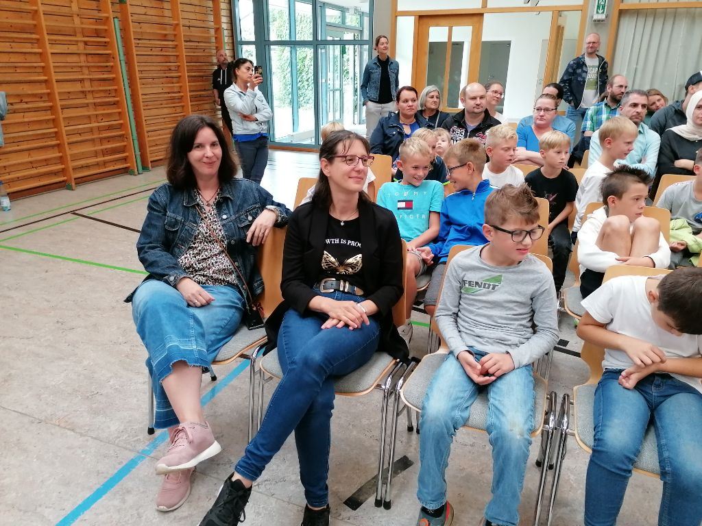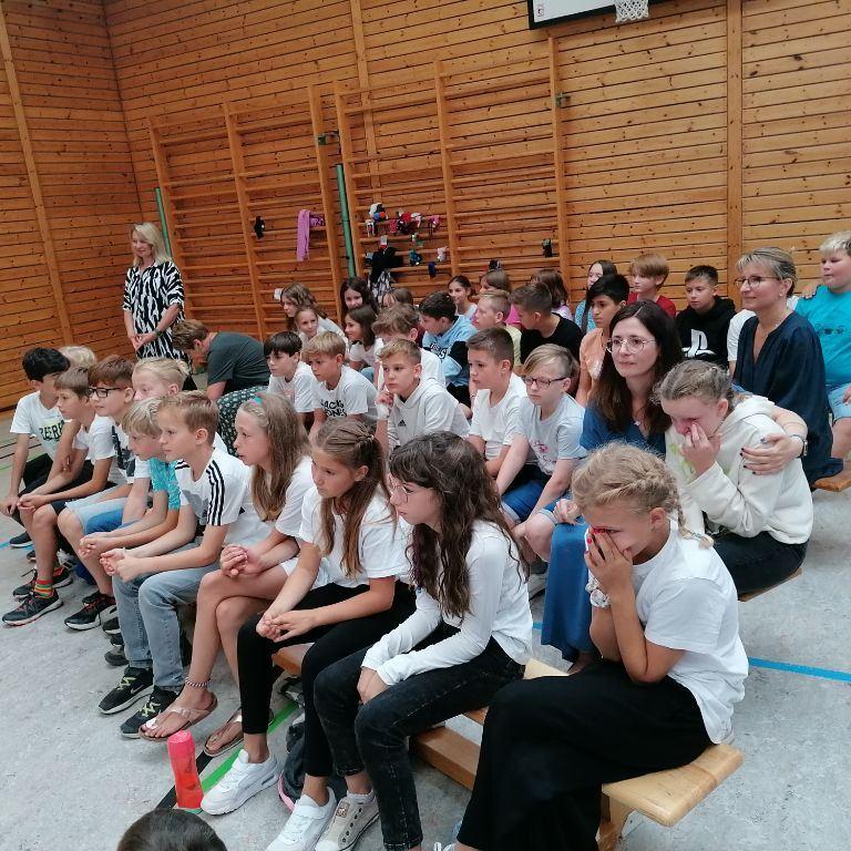 Nachdem Rektorin Breddermann den zukünftigen Fünftklässlern noch aufbauende Worte mitgab, sangen diese zum Abschluss "WIR SAGEN EUCH TSCHÜSS". Das ein oder andere Tränchen wurde dabei und noch danach vergossen.