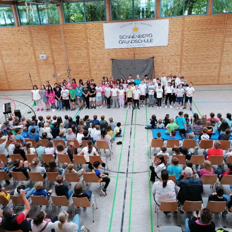 Am letzten Schultag, den 26.Juli 2023 verabschiedeten sich die drei vierten Klassen mit einem unterhaltsamen und emotionalen Programm von der gesamten Schulgemeinschaft. Der Schulchor unterstützte sie dabei mit den Liedern "Mein kleiner grüner Kaktus" und "We have a dream".