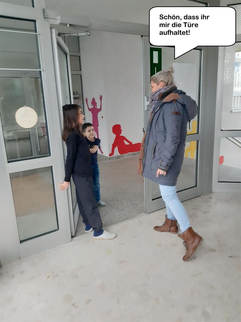 Um die Klassen für das Thema zu sensibilisieren, hat der Kinderrat im Vorfeld Bilder gemacht, auf denen Szenen zu sehen sind, in denen man Höflichkeit zeigen kann.